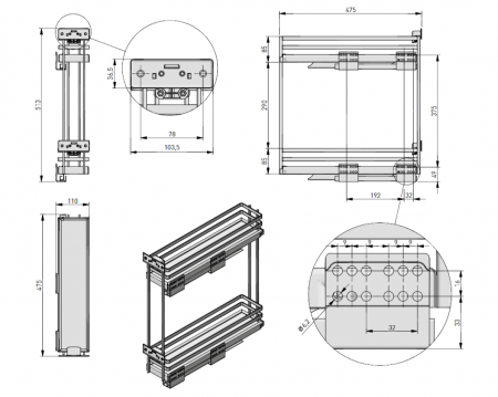 Dimensiuni cos: L:110 mm; l:475 mm; H:513 mm
