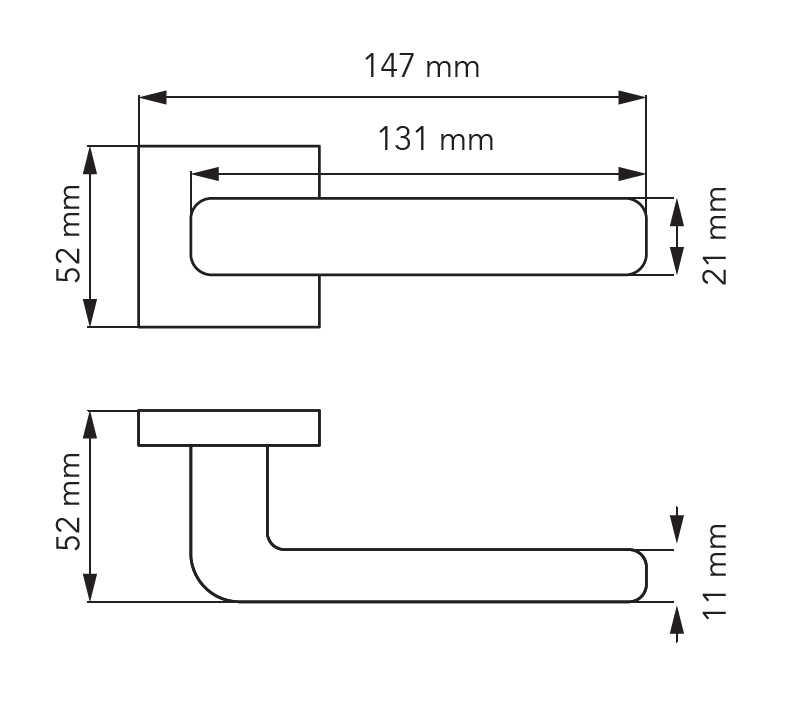 Dimensiuni maner: L:147 mm; l:52 mm; H:52 mm