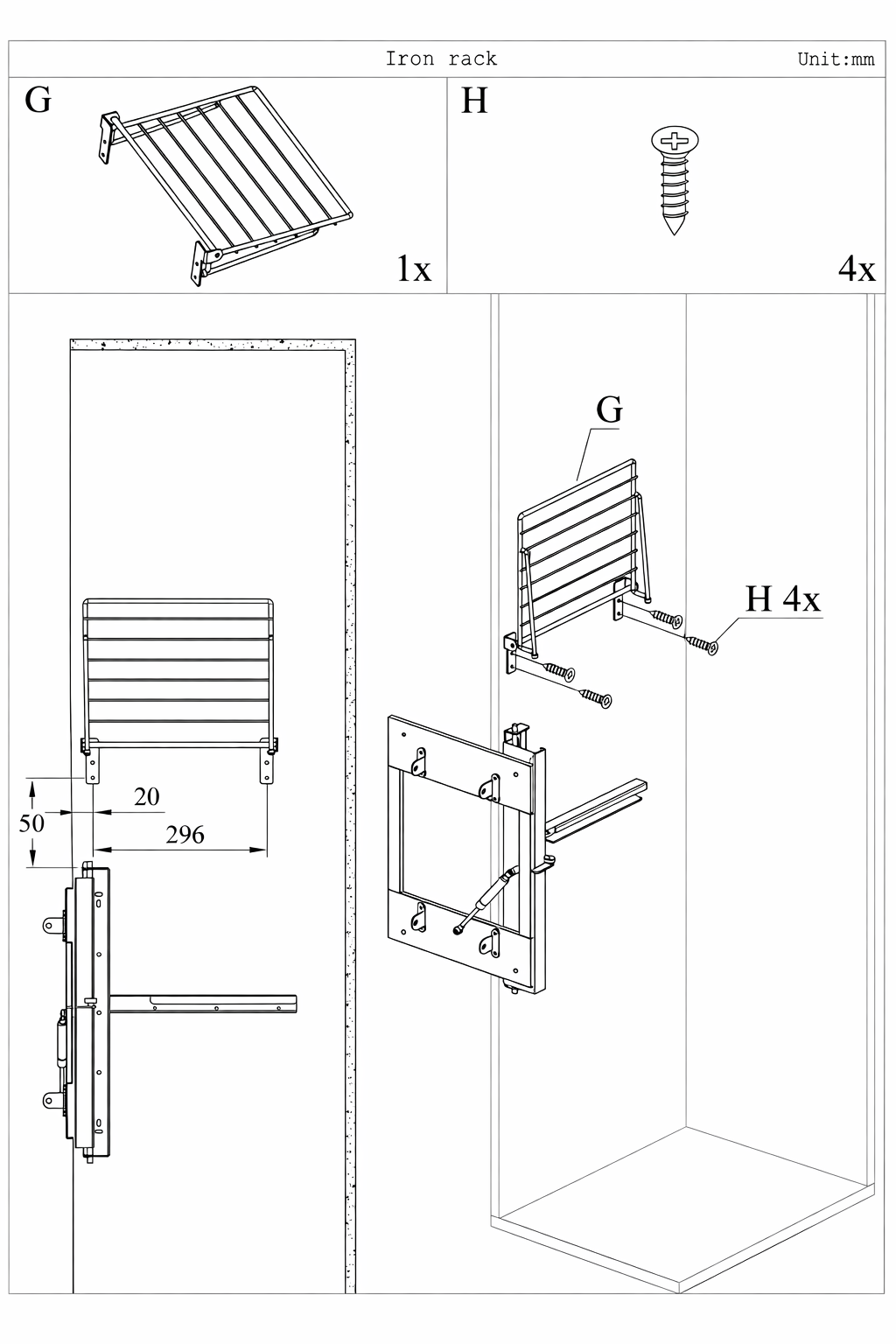 Maxdeco Masa de calcat incorporabila in dulap