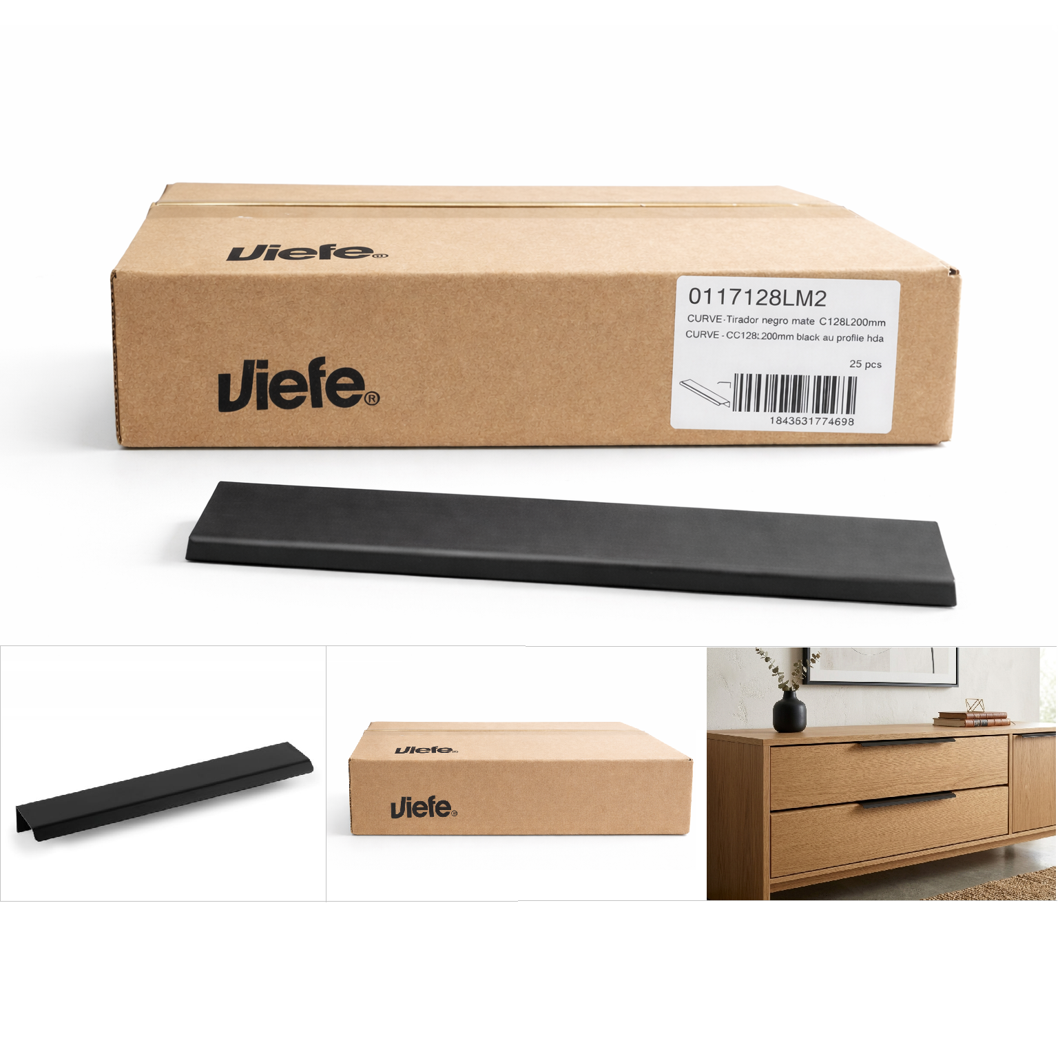 Viefe Cutie 25 bucati manere mobilier Cruve, finisaj negru mat, L:200 mm