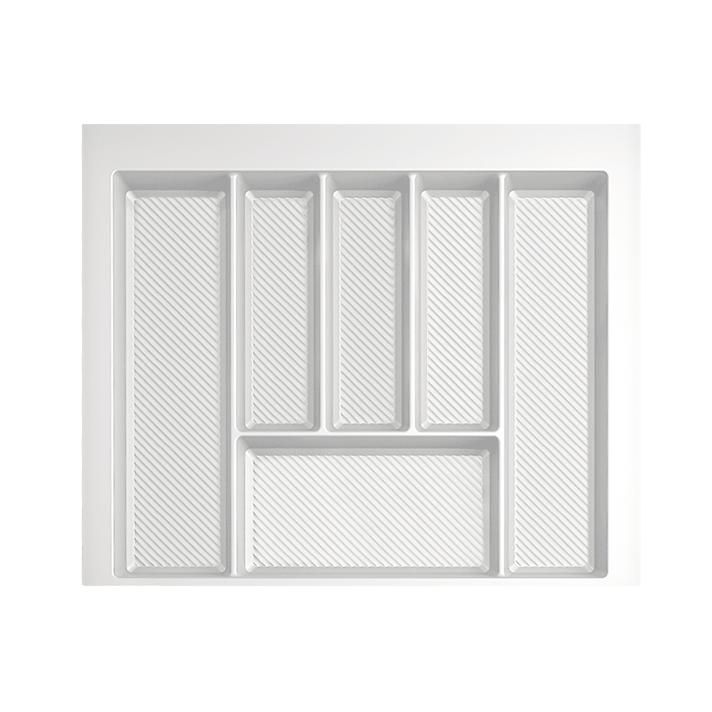 Conceput pentru sertarele cu latimea exterioara de 600 mm, modelul se potriveste sertarelor cu adancimea de 450–500 mm. Datorita designului flexibil, acest suport de organizare pentru tacamuri poate fi ajustat cu usurinta, marginile se pot taia astfel incat dimensiunile sa se potriveasca in intervalul 550–490 mm si 490–420 mm. Astfel, produsul se adapteaza chiar si mobilierului realizat pe masuri speciale.
