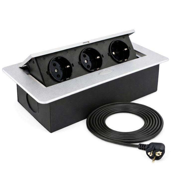 Produsul este echipat cu 3 prize Schuko 230V, permitand alimentarea simultana a mai multor echipamente intr-un singur punct.