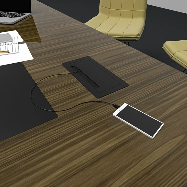 Această priză încorporabilă în blat este potrivită pentru birouri, săli de conferință, mese de meeting și alte spații în care este necesar acces rapid la alimentare, încărcare și conectivitate direct din mobilier. Poate fi folosită pentru laptopuri, telefoane, tablete, monitoare sau echipamente conectate la rețea, fiind o soluție eficientă pentru mobilier de birou și amenajări profesionale cu funcționalitate extinsă. Prin finisajul negru și designul discret cu clapetă, se integrează ușor în amenajări moderne, minimaliste, contemporane și office premium.