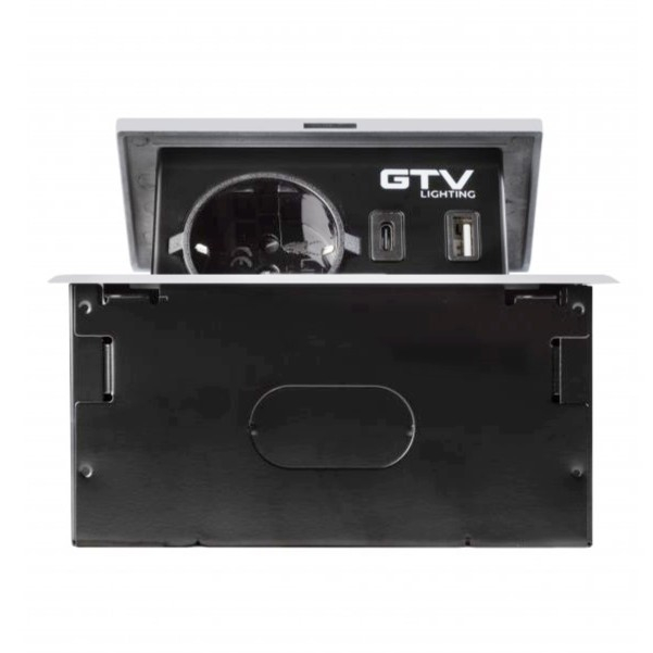 GTV Priza incorporabila in blat Avaro, cu o priza Schuko si port incarcare USB A+C, finisaj alb