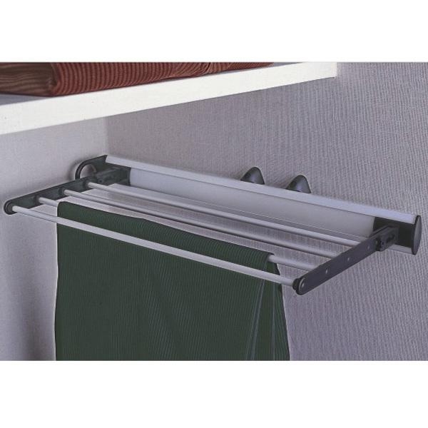 Suportul de cravate sau esarfe se monteaza pe interiorul lateralei corpului de mobilier cu o adancime minima de 450 mm. Este un suport extractibil ceea ce faciliteaza accesul rapid si usor la colectia dumneavoastra de cravate sau esarfe.