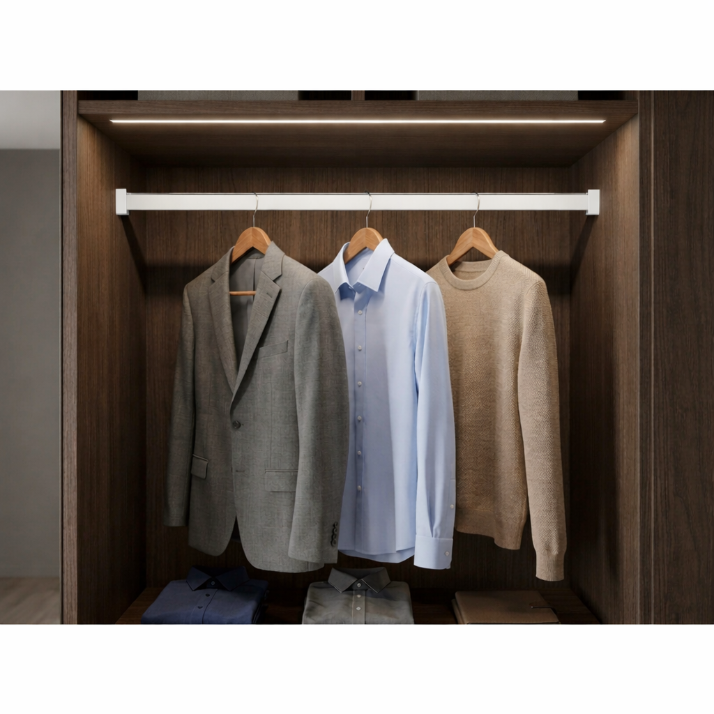 Bara pentru haine Adinor este potrivită pentru dressing, dulap, șifonier și mobilier realizat la comandă, fiind o soluție practică pentru organizarea hainelor pe umerașe.